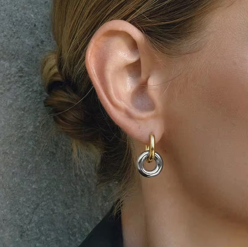 A modern blend of gold and translucent accents, these earrings feature a sleek hoop paired with a soft, glass-like circular drop. The contrasting textures create a chic, contemporary look that stands out effortlessly. Lightweight and versatile, they’re perfect for elevating everyday outfits or adding a subtle statement to evening wear. Minimal, elegant, and undeniably stylish.
