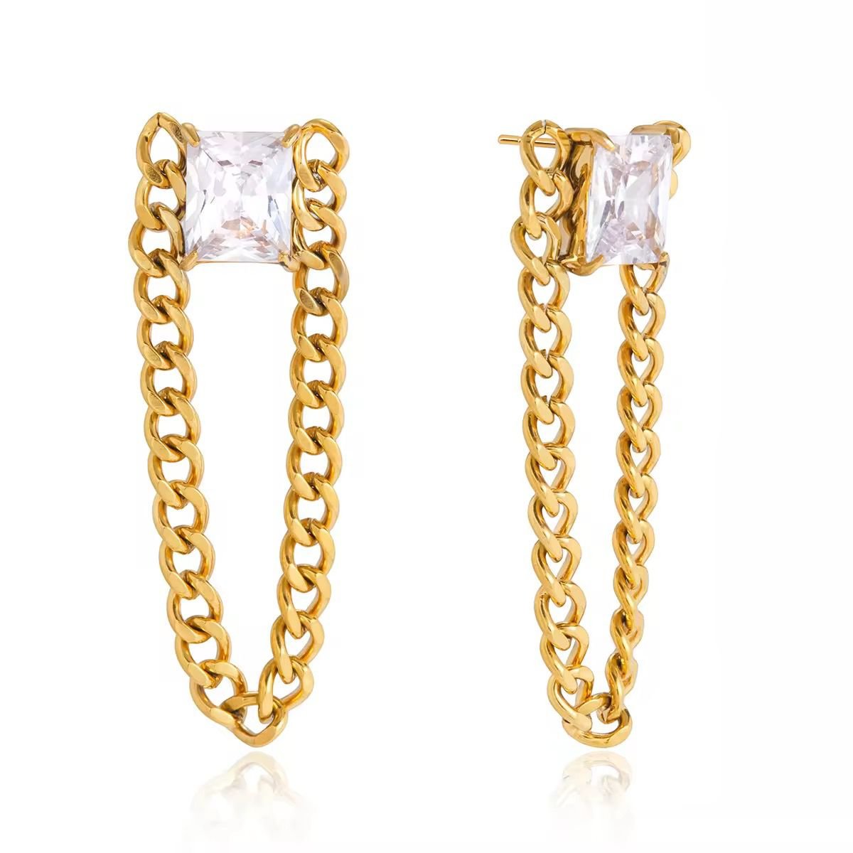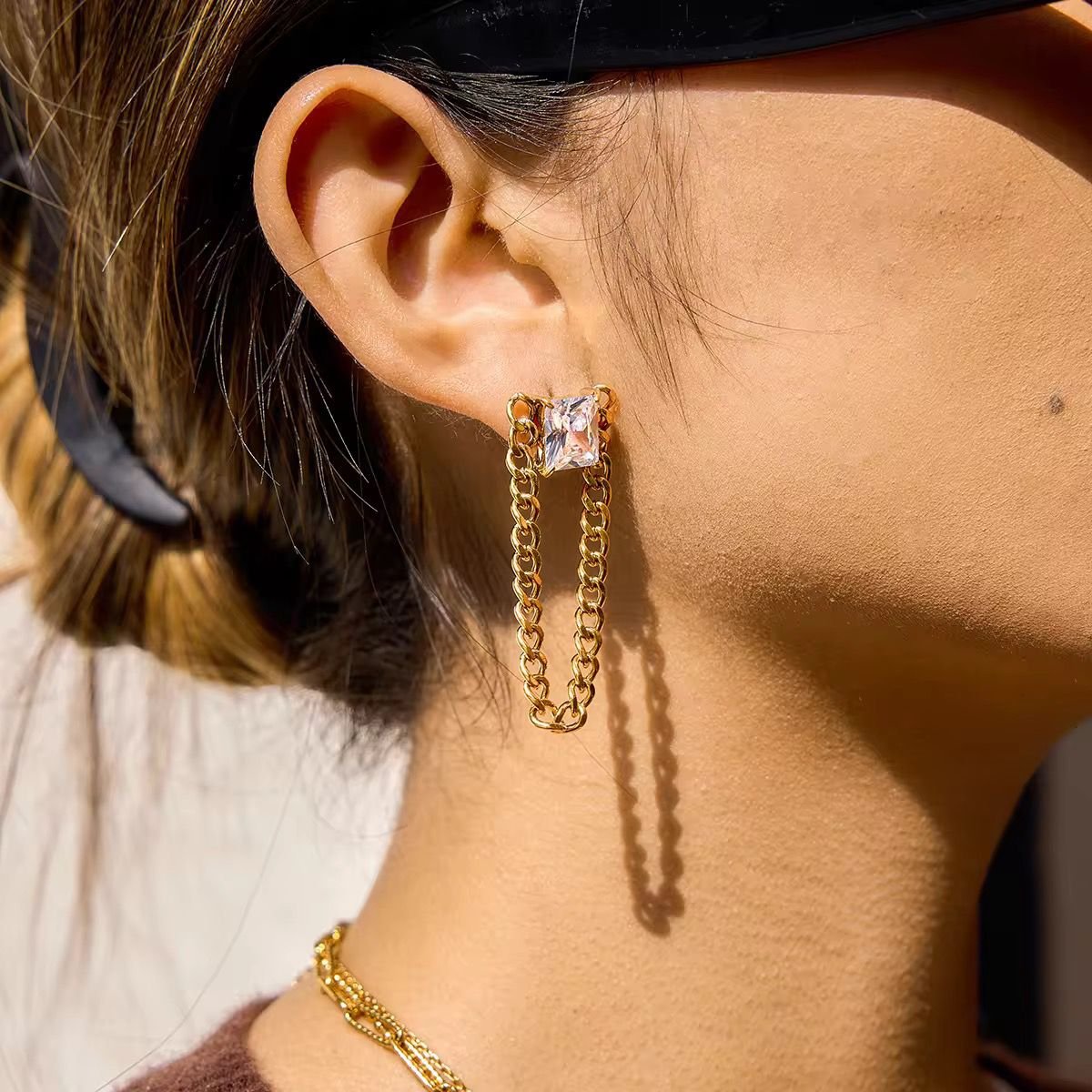Make a bold statement with the Luxe Link Drop Earrings, featuring a striking rectangular crystal stud paired with cascading gold chain links. Designed to blend edgy charm with refined elegance, these earrings add movement and drama to any look. Lightweight yet impactful, they’re perfect for elevating both daywear and evening outfits with effortless sophistication.
