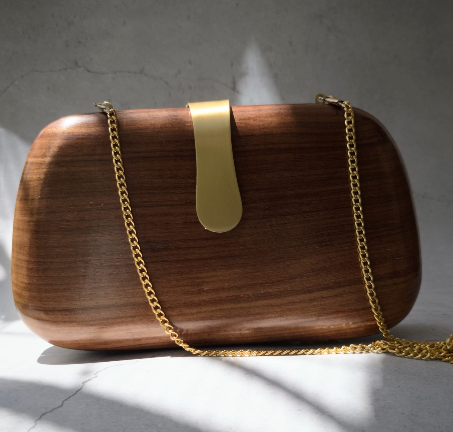 - Minimalist Wooden Clutch Design – Clean, sleek silhouette for a modern, elegant look