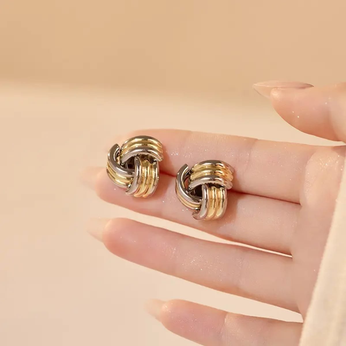 A perfect blend of elegance and edge, the Trinity Knot Earrings feature intertwined bands in dual tones that symbolize unity and timeless style. The sculptural knot design adds depth and dimension, making them a standout accessory for any occasion. Crafted with a smooth, polished finish, these earrings effortlessly elevate both everyday and statement looks. Bold, versatile, and endlessly chic.