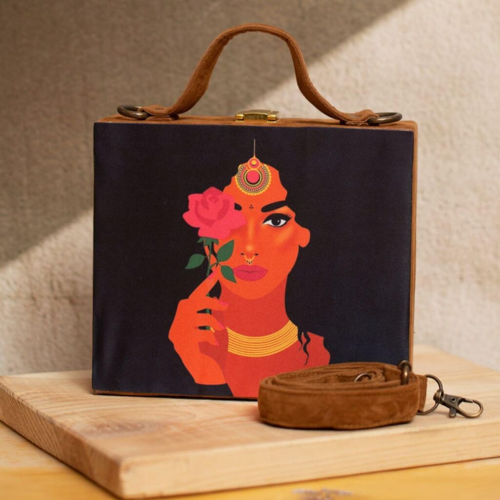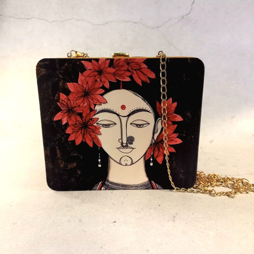 Introducing Yashna’s handcrafted, vegan clutch where artistry meets ethical fashion! This stunning piece showcases a bold, artistic illustration that brings personality and vibrancy to your look. Made from eco-friendly, cruelty-free materials, the clutch is perfect for those who appreciate both style and sustainability.